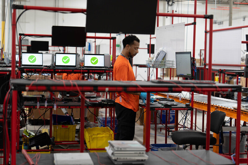Inside the laptop/desktop examination bay at SK TES’s Fredericksburg, Va. site.